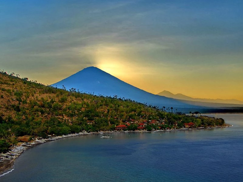 +29Amed is a coastal region located on the eastern coast of Bali, Indonesia, in the Karangasem Regency. It is not a single village but a string of several traditional fishing villages and bays, including Amed, Jemeluk, and Lipah. The area is notably situated in the shadow of Mount Agung, Bali's highest and most sacred volcano. It is geographically and culturally notable for its dramatic black sand beaches, a result of the region's volcanic geology, and its transition from a quiet fishing area to a destination known for world-class snorkeling and diving on the nearby coral reefs.
