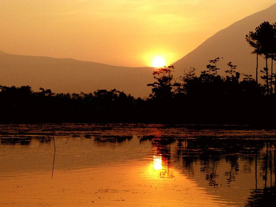Java experiences a tropical monsoon climate with distinct wet and dry seasons. The landscape is dominated by a chain of volcanic mountains running east to west, including numerous active volcanoes. Dense tropical rainforests originally covered much of the island, though significant areas have been converted to agricultural use. The island supports diverse wildlife including endangered species such as Javan rhinoceros, Javan leopard, and various primate species. River systems flow north and south from the central mountain range, creating fertile valleys and plains.